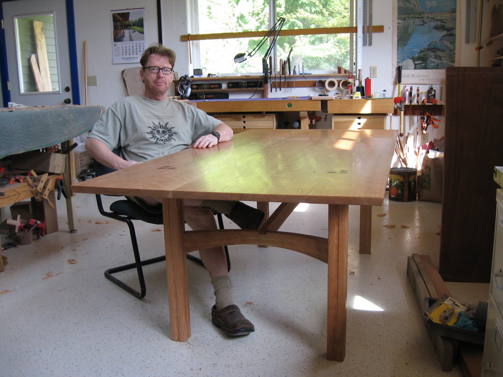 The Mid-Willamette Woodworking Guild Show is up and the dining table made it in, but it was a sprint to the finish–and with the finish, as I was applying oil/varnish only hours before stuffing the table in the van. Dry finish, dry I say!
