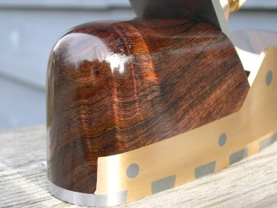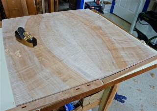 The following day I prepped the top for finish with a secret weapon: a high angle smoothing plane from my friend Konrad Sauer. Cute as a bug, smooths wild wood better than magic.