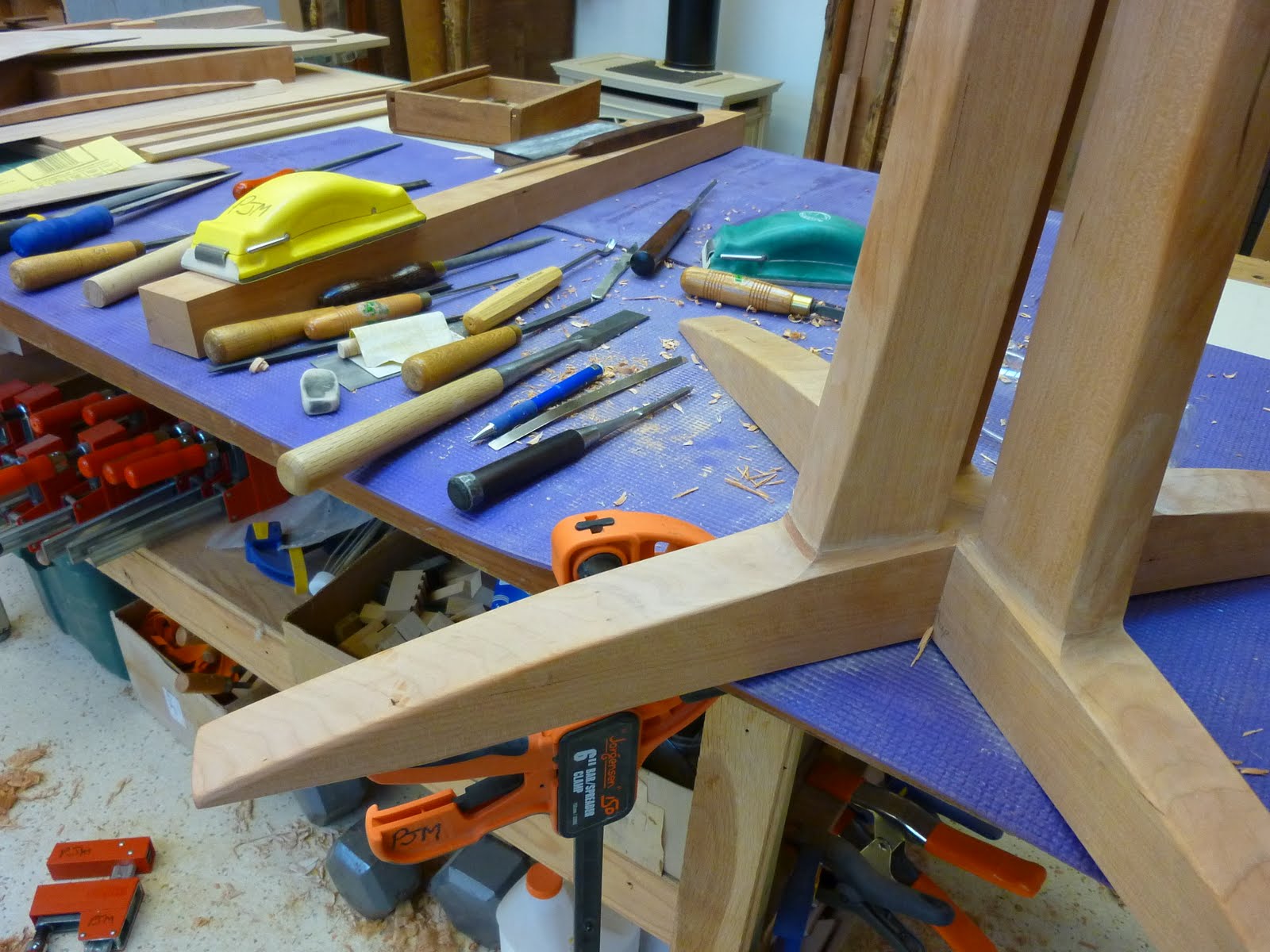 The following day I prepped the top for finish with a secret weapon: a high angle smoothing plane from my friend Konrad Sauer. Cute as a bug, smooths wild wood better than magic.