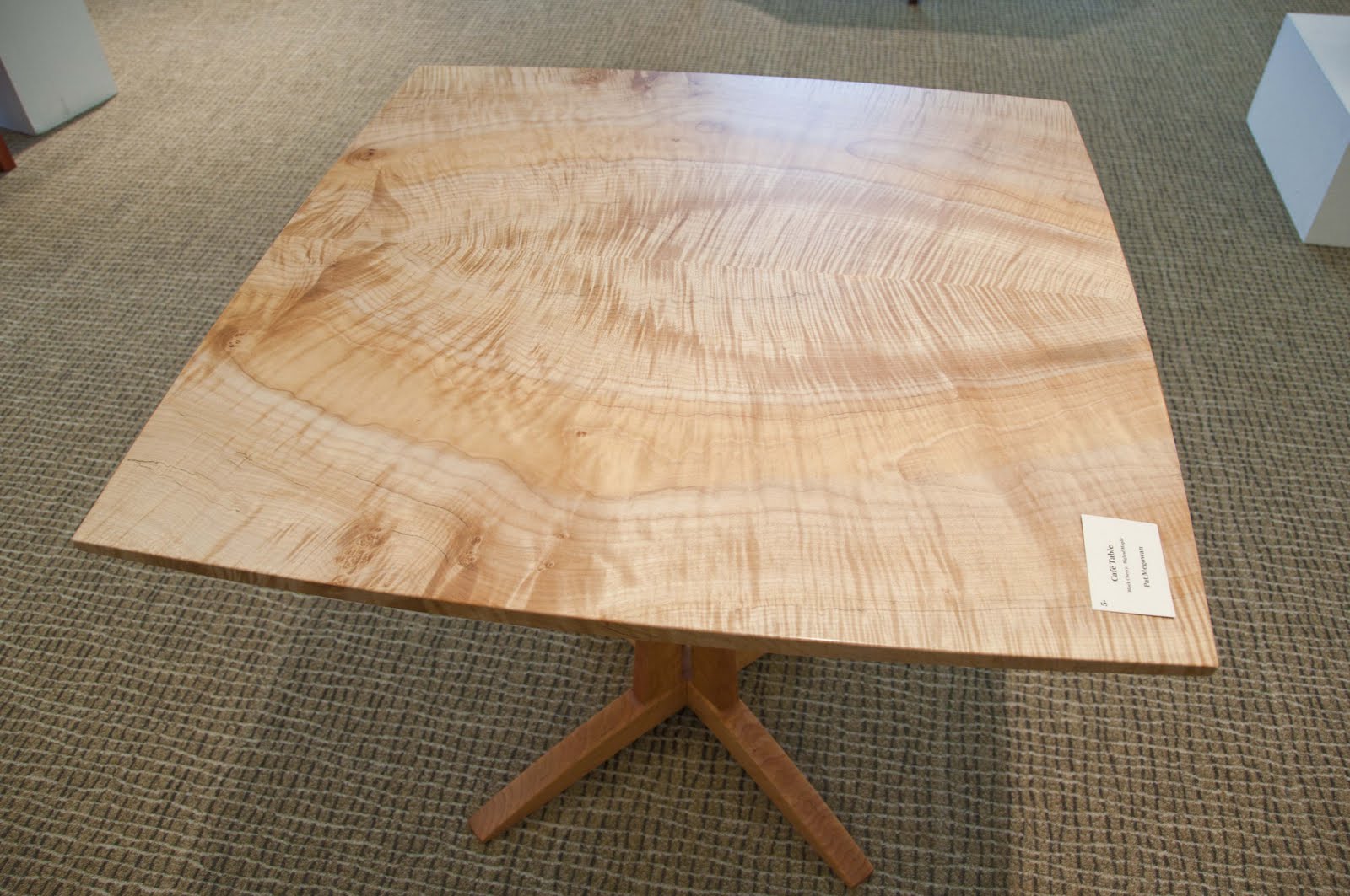 Fast forward: at the show, one hour after the doors opened. Tables look lonely w/out chairs, so I snatched some from my friend Bill Storch’s table. Bill puts up with a lot–he’d already sprayed the table top finish and cured it in his sauna, a story for another time. But he got the last laugh, his table with chairs won best in show. Nice work!