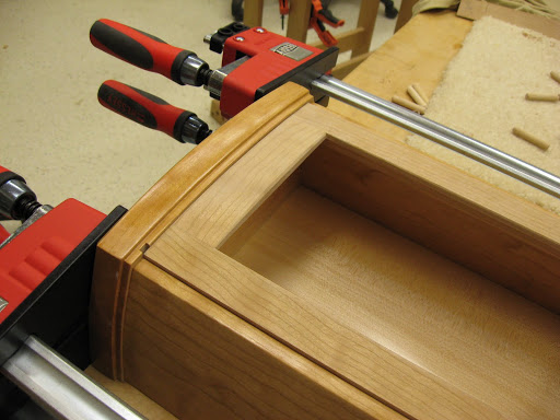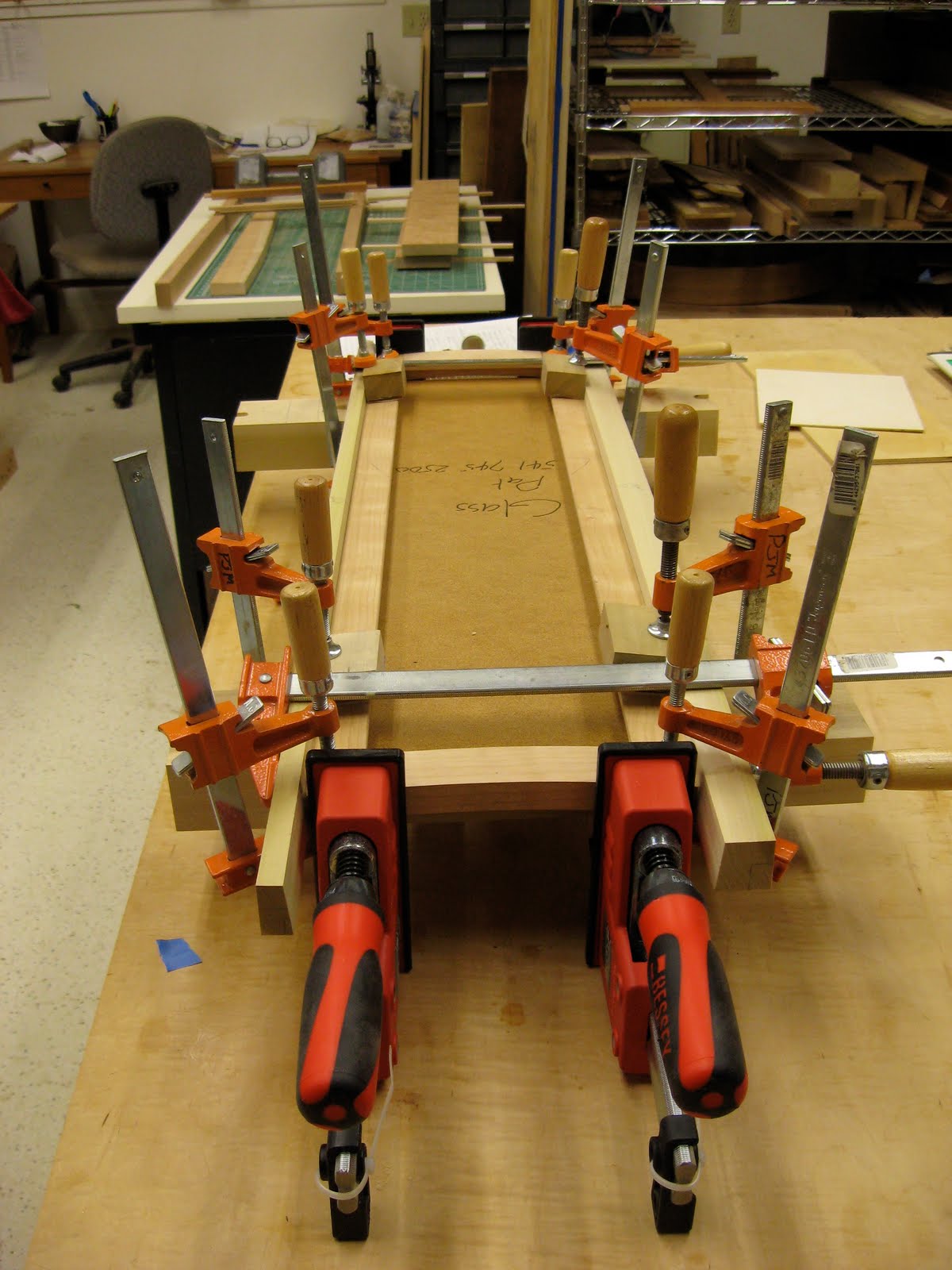 All of the keyboard tray internals were held together by tape or unglued loose tenons. The Shaker table actually showed up the second day of the show, having been glued in the morning, finished after lunch, and delivered around four. Some cute person had already voted it best in show; what faith!