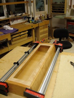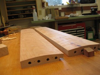 That evening Ann gave me a “what were you thinking?” look. Whatever–I didn’t see her (or anything else) much for the next nine evenings. The table required about 60 hours; what with dimensions to firm up, curves to sweeten, templates to make, knock-down hardware to fabricate, a new tool to sort out, and unusual stress and micro-checking in the planks, all on top of the actually making the thing.