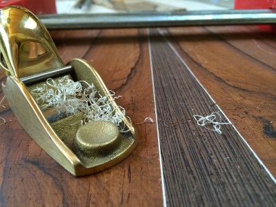 It’s hard to capture in a photo, but the Carpathian top has striking silking, a term used to describe the lustrous appearance of the ray cells that cross the growth rings. Their prominence is an indication of well quarter-sawn wood.