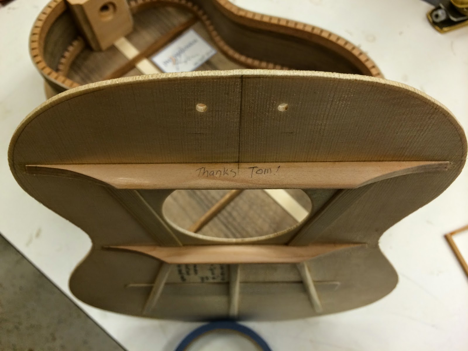Now, with multiple instruments in process at once, I often name them as an amiable way to think about and discuss them with others. Watson got his name by having English walnut back and sides and a big heart.